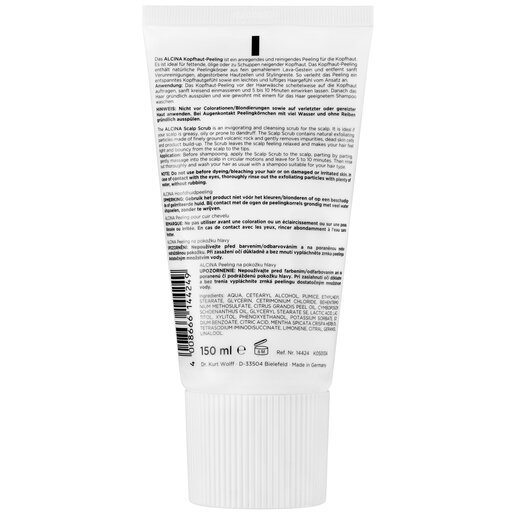 Das ALCINA Kopfhaut-Peeling ist ein reinigendes und anregendes Peeling für die Kopfhaut. Es ist ideal für fettende, ölige oder zu Schuppen neigender Kopfhaut. Das Kopfhaut-Peeling enthält natürliche Peelingkörper aus fein gemahlenem Lava-Gestein und entfernt sanft Verunreinigungen, abgestorbene Hautzellen und Stylingreste. So verleiht das Peeling ein entspanntes Kopfhautgefühl sowie ein leichtes und luftiges Haargefühl vom Ansatz an.